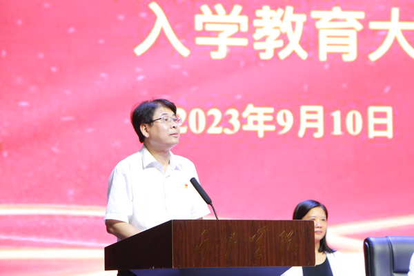 李新富书记在讲话中向新生们简要介绍了教院的基本情况,并从“什么是大学?”“为什么读大学?”“如何过好大学?”三个方面引导新生对于大学生活的思考,他希望同学们都能高树立“躬耕教坛,强国有我”的志向与抱负,都能做到“言为士则,行为世范”,厚植教育情怀,熟练师范技能,擦亮青春底色,做有理想、敢担当、能吃苦、肯奋斗的新时代好青年,未来能成为一名受人尊敬、桃李满天下的“经师”与“人师”相统一的“大先生”!