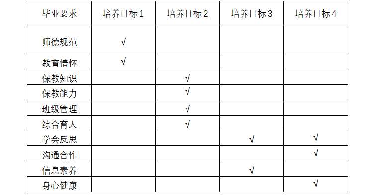 4.具有良好的团队意识和沟通合作能力,具有创新创业意识和实践能力,身心健康,德智体美劳全面发展,具有较高的综合素质,能够初步胜任幼儿园保教管理工作。
