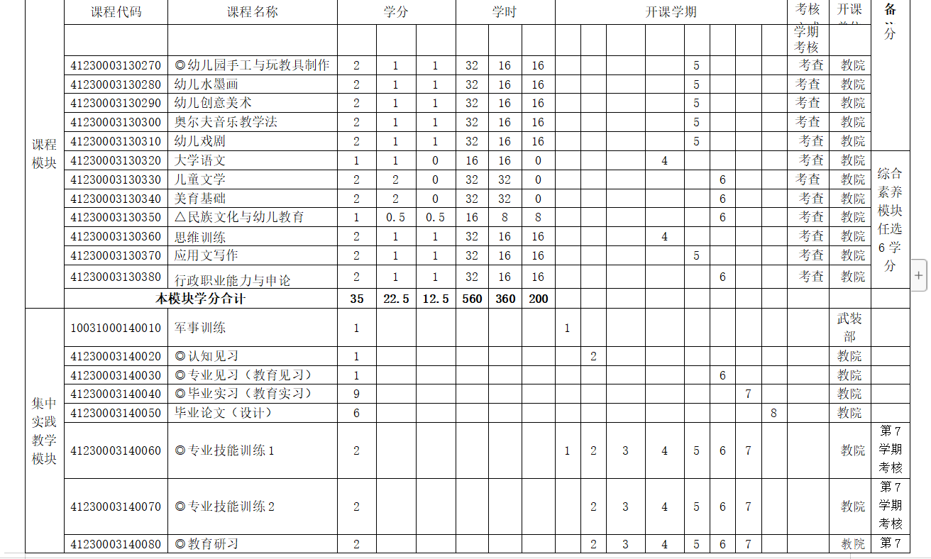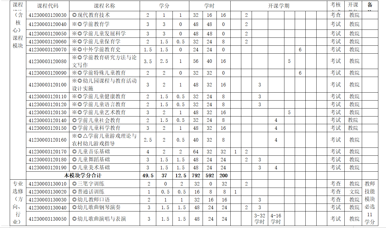 4.课程计划表中以“※”标注的课程为专业核心课程,以“◎”标注的课程为教师教育课程,以“△”标注的课程为服务区域经济社会发展的特色课程。
