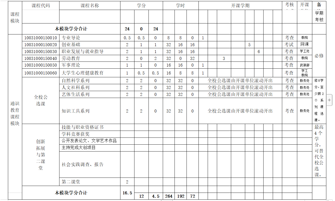3.专业选修(方向、行业)课程模块中单门课程选修人数35人以上方可开课。
