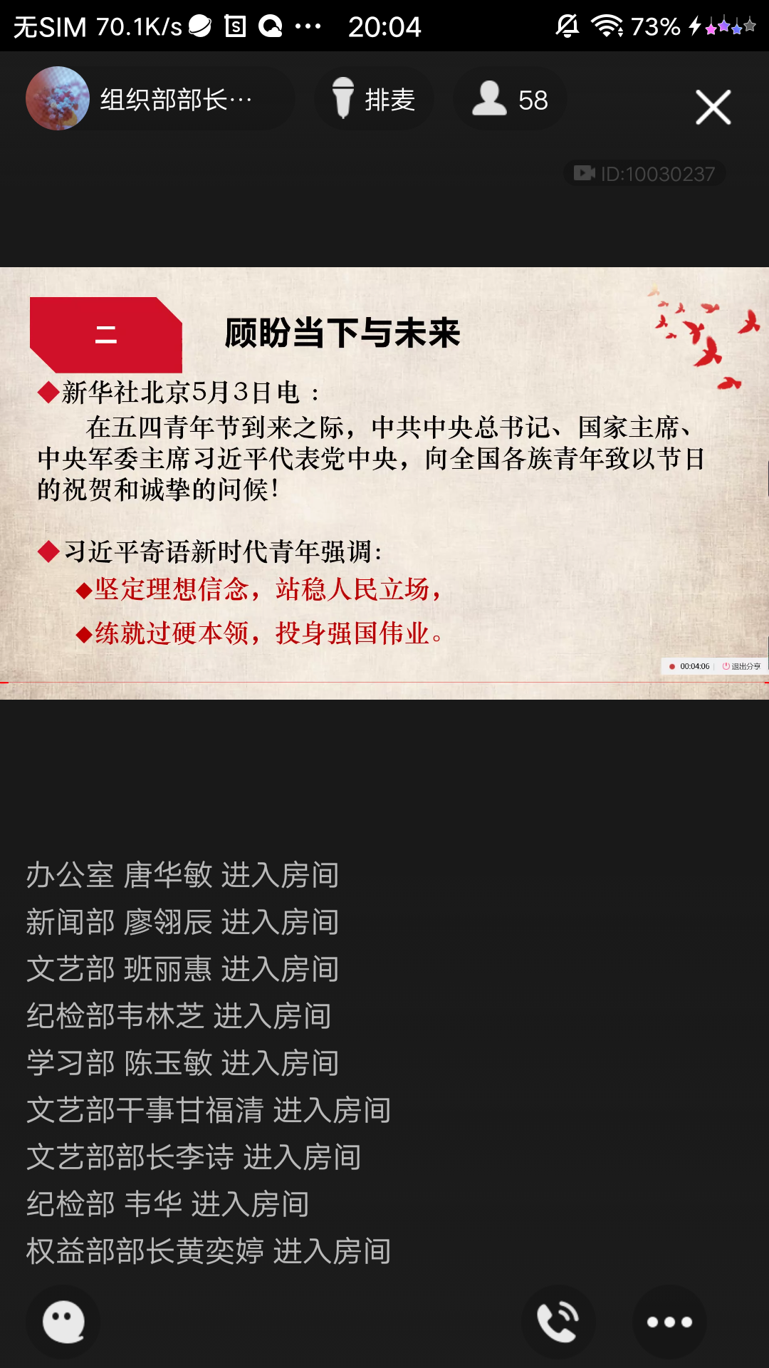 5月7日,必赢3003no1线路检测中心团委、学生会组织召开“青年强则国强”线上主题会议。学院团委书记吴建红及团委、学生会全体成员参加了会议。团委、学生会组织部部长唐小芳主持本次会议。