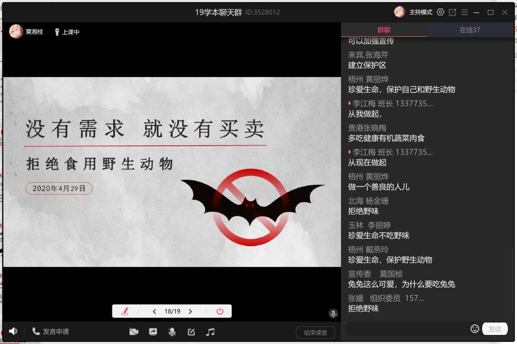 为增强我院团员认识到保护野生动物的重要性,积极宣传国家关于野生动物保护的相关法律,达成以实际行动保护野生动物的共识,4月,我院开展“关爱野生动物,共筑和谐生态”主题团日活动,通过召开主题班会、播放纪录片、开展知识竞赛等形式,增强青年团员关爱野生动物、与自然和谐相处的意识,形成节约资源和保护环境的生活方式。