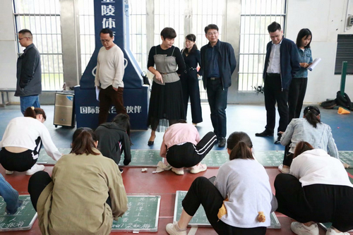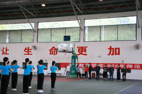 9月27日上午在校友馆举行的三笔字、列队和体操考核,学院党委书记李新富、院长邓琴、副书记王爱林、副院长覃奠仁和谭静、团委书记吴建红、学前教育系主任黄怡冰等老师到现场观摩指导。通过教师基本技能考核,全面检查师范生掌握教师教学基本功的能力,调动广大教师精心指导、学生刻苦训练的积极性,切实提高未来教师职业技能水平,为未来的教育教学工作打下扎实基础。