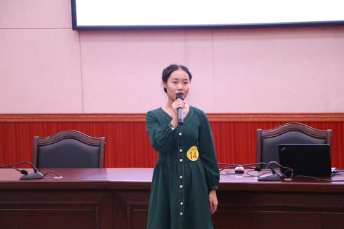 本次演讲比赛由十五位参赛选手按序号依次上台演讲。选手们昂扬的精神风貌、饱满的精神状态、准确的肢体语言、生动的故事情节、流畅的语言表达打动了评委老师和在场观众,将现场气氛推向一个又一个高潮。演讲结束后,韦素琦老师对本次比赛做总结发言。她首先对演讲比赛圆满成功表示祝贺,并强调“讲”是演讲的中心,是主题内容的具体表达,在演讲中要“演得形象、讲得生动”。她表示本次演讲比赛有两大亮点,一是演讲主题突出、内容实在;二是演讲技巧精彩、体态语言恰当。