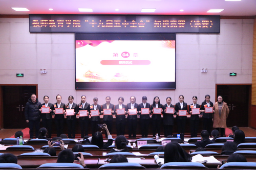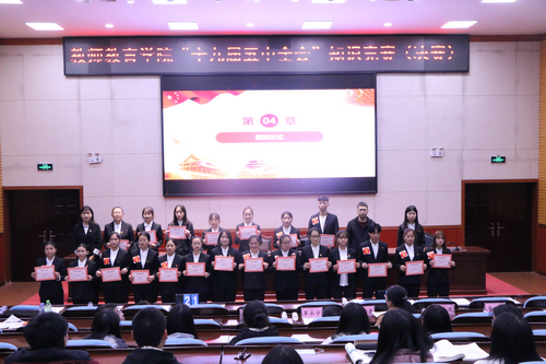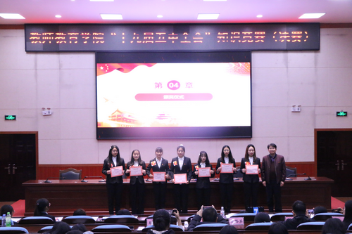 本次竞赛主要有笔试和知识抢答赛两种形式。通过笔试选出前42名学生,再由这42名学生以抽签方式分成6组,每组推选出一名选手作为队长参加知识抢答赛。知识抢答赛一共有必答题、普通抢答题和风险抢答题三种题型,最终的分数等于必答题分数加上抢答题分数。各参赛小组准备充分,在第一轮必答题时从容不迫,游刃有余;在第二、三轮抢答题时,选手们快速抢答,现场气氛热烈,观众热情高涨。抢答环节结束后,李新富书记在讲话中希望同学们以本次知识竞赛为契机,进一步增强“四个意识”,坚定“四个自信”,做到“两个维护”,主动了解关心国家大事、国情国策,将个人理想与祖国的前途、党的事业结合起来,努力在实现中华民族伟大复兴的中国梦的生动实践中放飞青春梦想。
