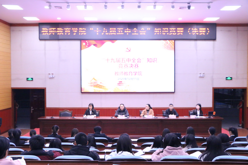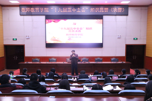 12月11日晚,必赢3003no1线路检测中心在弘毅楼1区205报告厅举办以“学习贯彻十九届五中全会精神:新时代·新征程”为主题的知识竞赛。学院党委书记李新富、覃永宁、龙路英、李进会、钟凤、王慧婷老师及全体学生党员、发展对象及入党积极分子出席了本次活动。覃永宁、龙路英、李进会、钟凤、王慧婷老师担任本次活动公证人。