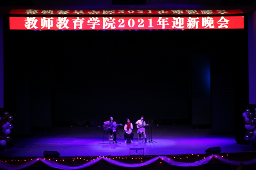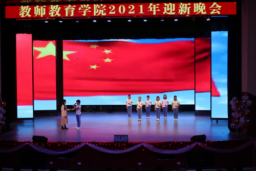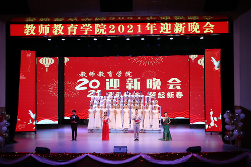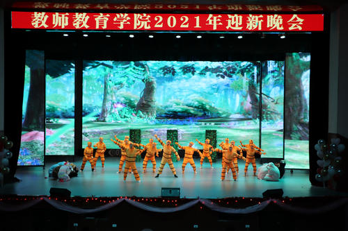 本次迎新晚会共有十三个节目,激情的演唱、优美的舞蹈、感人的小品、令人动容的朗诵等各类节目轮番上映,令人眼花缭乱。节目异彩纷呈,气氛热烈,处处洋溢着青春活力。晚会伊始,充满新年喜庆气息的《大红灯笼高高挂》开场舞瞬间点燃了现场的气氛。随后,民族舞蹈《天浴》《细雨屋前》《跳弦》曼妙的舞姿配上悦耳的音乐,将民族风采展得淋漓尽致;儿童剧《老虎照镜子》尽显教院特色,可爱的小老虎和小动物们惹得观众哈哈大笑,赢得观众一片掌声;由学院艺术团带来的朗诵《黄菊花开》,让观众不禁为“最美教师”的故事所感动,《中国力量》更是让观众体会到举国上下团结一心的凝聚力;小品《等你回家》和舞台剧《致敬最美逆行者》都讲述了疫情期间义无反顾冲在抗疫一线的人的故事;歌曲串烧《思念是一种病+逆光+你在终点等我+我的梦》《飞鸟和蝉》和合唱团的《那段时光》动听的歌声收获了观众们激烈的掌声和欢呼声,将晚会推向了一个高潮;由教师代表主演的舞蹈串烧《风的季节+你笑起来真好看》更是令观众惊喜不已,向观众们尽展工作之外的风采。此外,晚会穿插的互动抽奖节目环节也提高了观众的兴致,祝福弹幕源源不断。最后,晚会在火热的舞蹈串烧中圆满落幕。
