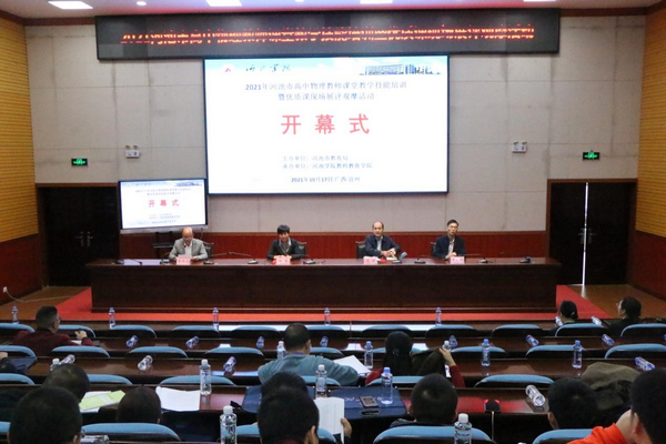 10月17、18日,2021年河池市教师课堂教学技能培训系列之五——高中物理教师教学技能培训暨优质课现场展评观摩活动在我校弘毅楼205报告厅举行。河池市教育科学研究所所长冯斌、河池市教科所教研员韦天值、必赢3003no1线路检测中心院长邓琴等领导出席开幕式。河池市各县区教研员代表和高中物理教师代表,以及我校部分师生代表参加活动。