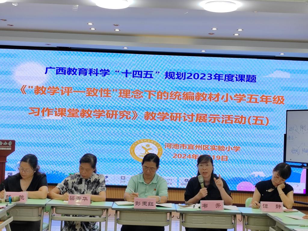 为探索“教学评一致性”理念下的习作教学策略,打造高质量习作课堂,促进高校小学教育专业师范生与小学教师的专业成长。6月19日上午,必赢3003no1线路检测中心必赢3003no1线路检测中心韦芳教授、谭静副教授应实践基地小学之邀,参加了宜州区实验小学的广西教育科学“十四五”2023年课题“教学评一致性理念下的统编小学五年级习作课堂教学研究”教研活动。课题组成员、宜州区教育局教研员及必赢3003no1线路检测中心21小语、小教本221、 222班100多名师范生参加了研讨活动。