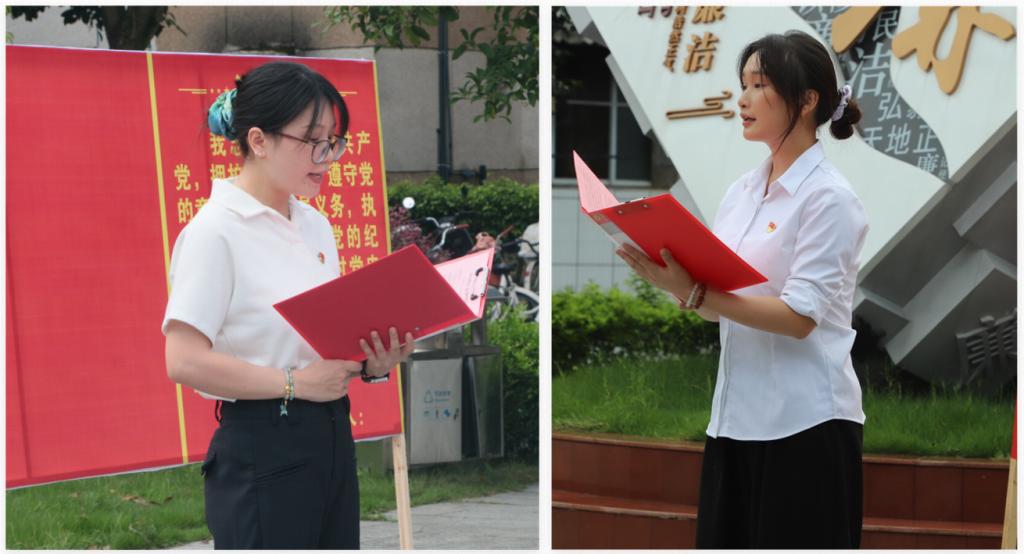 图4:教师党员代表韦雅文、学生党员代表阳珊珊发言