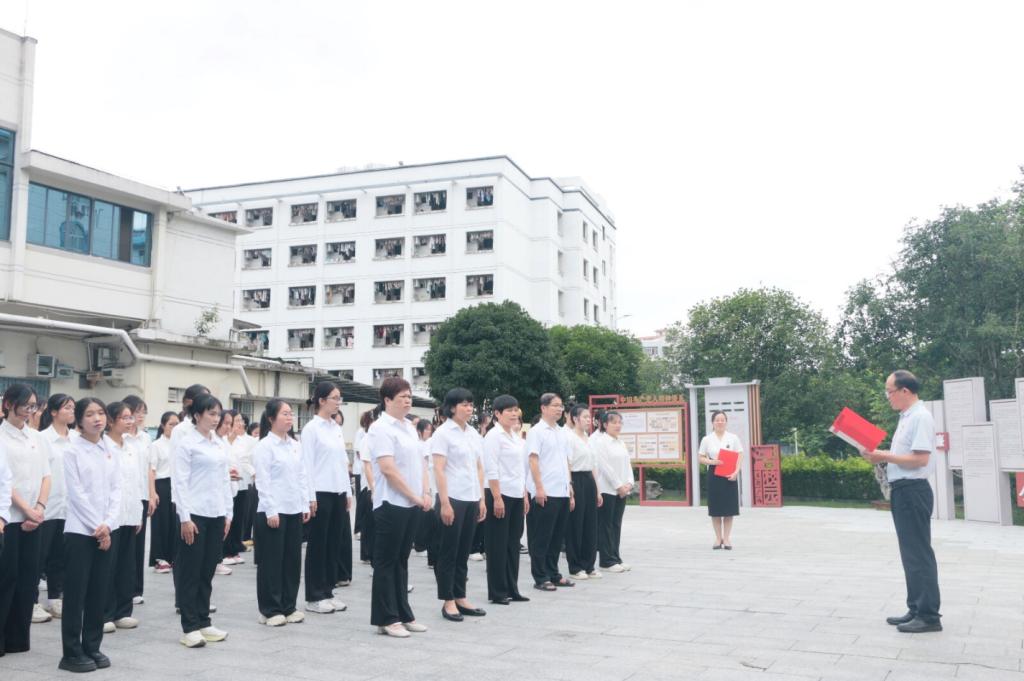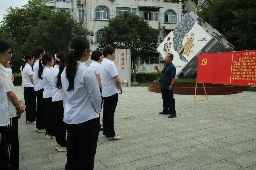 活动从为新党员佩戴党员徽章、举行新党员入党宣誓暨老党员重温入党誓词仪式逐步展开。新党员代表阳姗珊同志、教师党员代表韦雅文同志分别作了发言。随后,学校离退休老党员罗玉欢结合自身工作经验和早年入党初衷,讲述了自己的入党追求和使命担当,坚持做到退休后不忘自身党员身份,始终努力做一名心中有党和国家、心中有人民和他人、心中有戒律和自律的一名共产党员,他为全体党员上了一堂亲切、生动和务实的党课,赢得现场党员同志们的阵阵掌声。