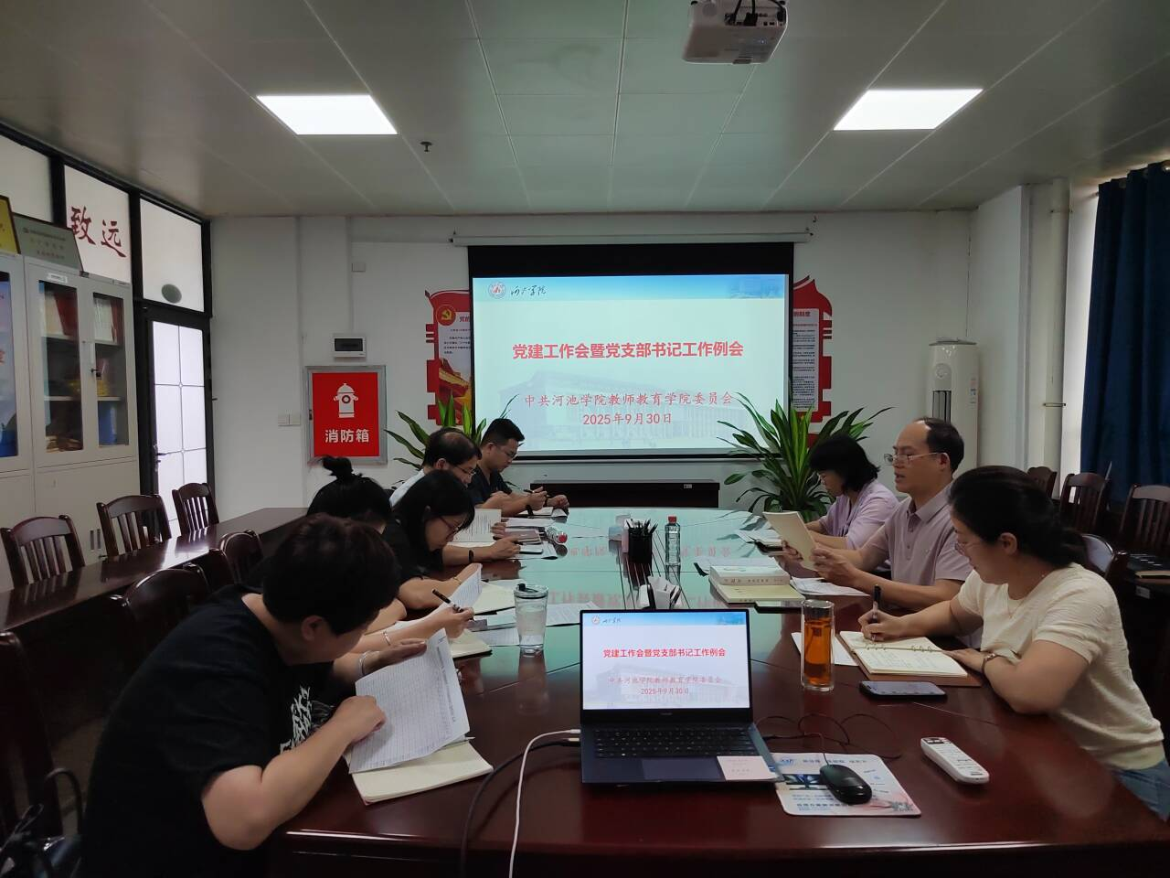接着,正处级专职组织员蓝春亮就近期发展党员工作进行安排说明,包括党员发展名额分配情况及各个阶段的时间节点要求。各党支部就近期发展党员工作开展情况以及工作中需要解决的困难进行交流与说明。