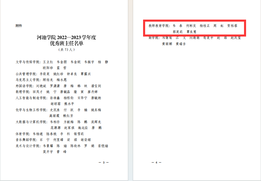 根据《关于表彰2022-2023学年度优秀班主任的决定》(校政发[2023]169号)文件精神,我院韦泰等7名老师荣获“必赢3003no1线路检测中心2022-2023学年度优秀班主任”荣誉称号。