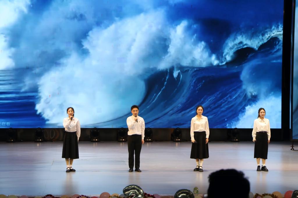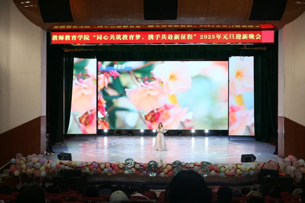 晚会节目精彩纷呈,涵盖了歌曲、舞蹈、小品、朗诵等多种表演形式。学生们以饱满的热情和精湛的技艺,为观众带来了一场场视觉与听觉的双重享受。晚会以激昂的开场舞《一起跳舞吧》拉开了序幕,灯光璀璨,音乐激昂,瞬间点燃了现场的气氛。随后,精彩节目轮番上演。由小教公费232班带来的舞蹈《wake》,通过激情的表演,展现了当代大学生的青春活力和追梦精神;舞蹈《茉莉吟》通过精美的服饰、舞台设计和灯光效果,营造出一种梦幻般的视觉效果;由小语22班表演的小品《消失的周末》,则以幽默诙谐的方式,再现了校园生活的点点滴滴,引发了观众的强烈共鸣。随着一曲悠扬的大合唱《国家》的响起,晚会缓缓落下帷幕。在两个小时的时间里,大家共同见证了青春的绽放与梦想的起航。